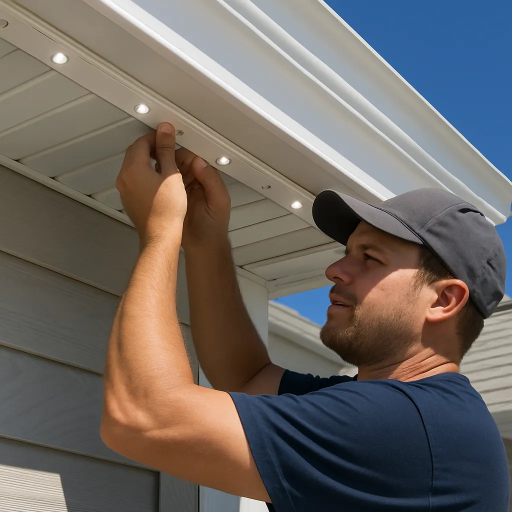 Our permanent lighting system is built with sleek aluminum tracks that blend seamlessly with your trim and roofline. By day, they’re practically invisible — by night, they transform your home into a showcase. Whether it’s holiday sparkle, warm accent lighting, or game-day colors, Dash makes your home look sharp, stylish, and unforgettable.